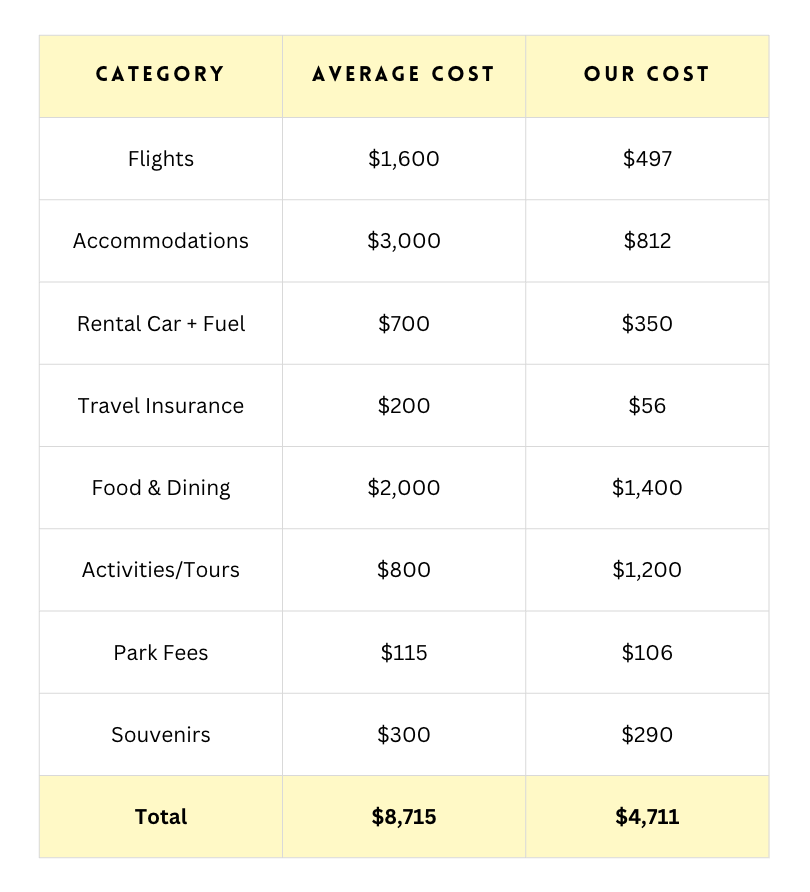 We managed to cut nearly every category in half. The activities budget was the exception because we chose to splurge a little, but we still came out ahead. More on that later!